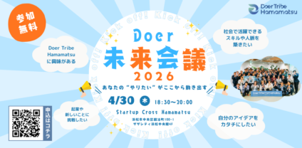 2025年12月20日学生起業のリアル~ゼロイチ×DoerTribeHamamatsuコラボイベント~[別サイト(Peatix)へ移動します]
